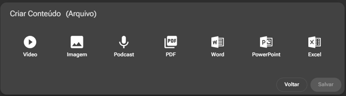 Detalhes sobre formatos de vídeo, áudio/podcast, imagens, documentos, planilhas e apresentações. Exemplo na imagem abaixo: